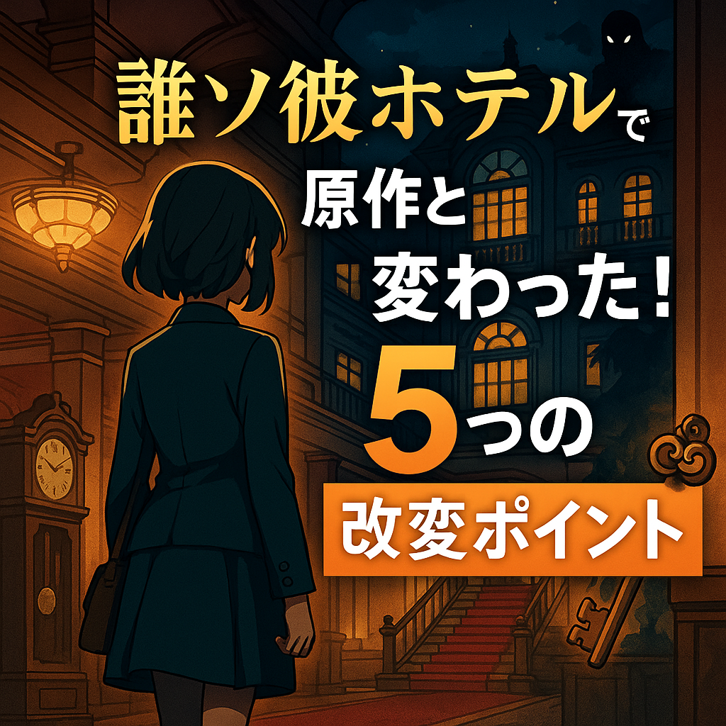 本記事では、アニメ版『誰ソ彼ホテル』が原作ゲームと比べてどのように変化・追加されているか、5つのポイントに絞って解説します。原作を既に知っている人は“ここが違う”という視点で、初めて触れる人は“どんなアレンジがあるのか”という興味でご覧ください。