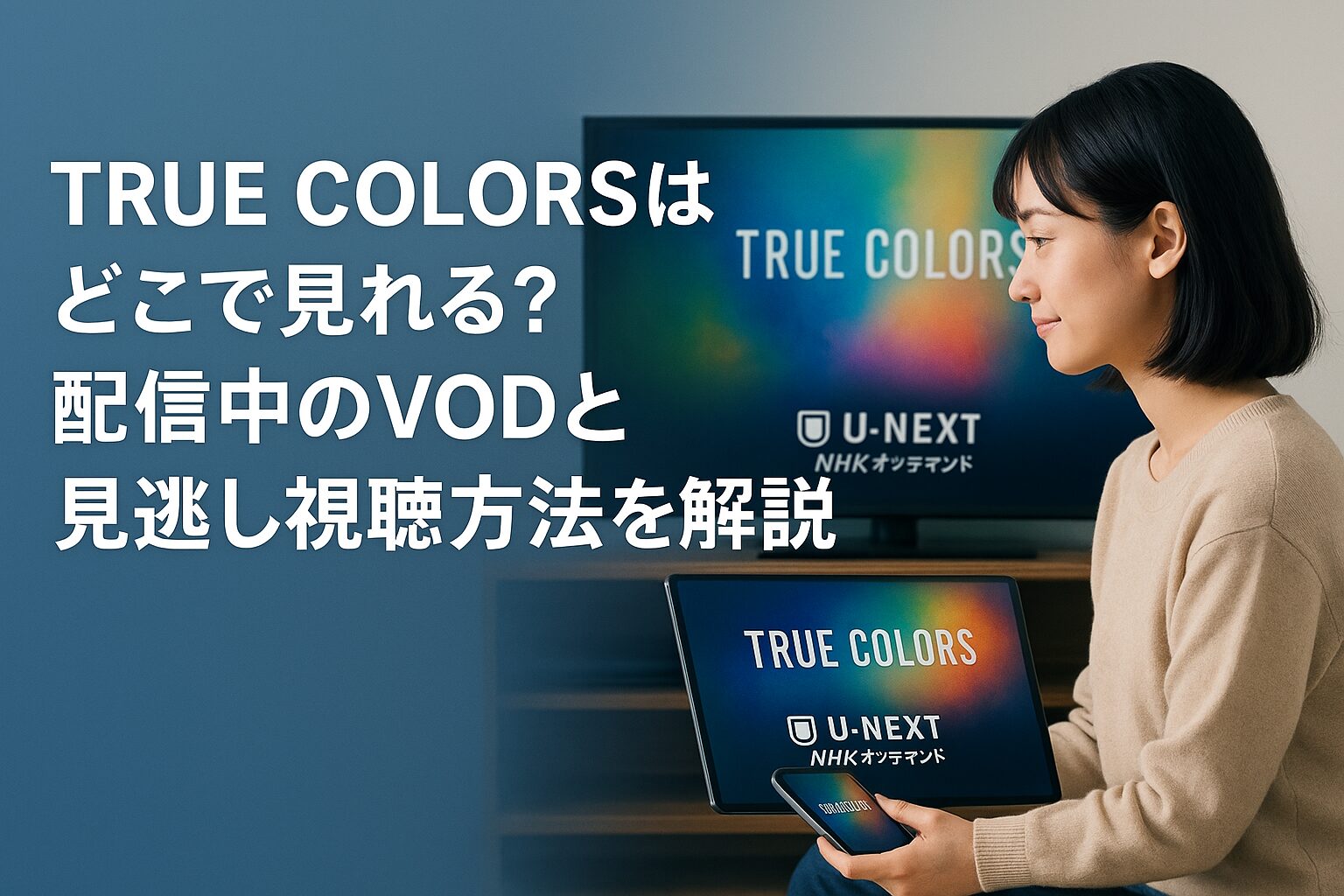 結論から言うと、TRUE COLORSはU-NEXTの「NHKオンデマンド」を利用すれば全話視聴できます。